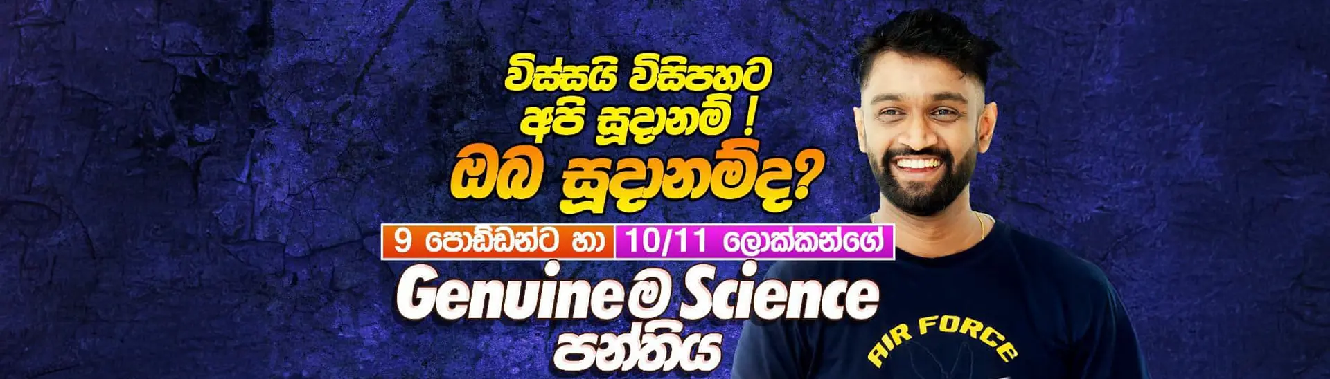 “අත්දැකීම් ගොඩක් තියෙන, හරිම ජනප්රිය විද්යා දේශක හැමොම ආදරය කරන අපේ විරාජ් සර්, Science ගවේෂණ චාරිකාවක යනව වගේ අත්දැකීමක් සෑම ලමයකුටම ලබා දෙනවා , සරල පැහැදිලි කිරීම්, පර්යේෂණ ඇටවුම් සහ සිත්ගන්නා සුලු රූපසටහන් සහ වීඩියො මගින් අමාරු විෂය කොටස් මතක හිටින ලෙස කියලා දෙනවා… past paper practice, unique tutes වගේ දේවල් එක්ක. හරියටම step by step program එකක් තියෙන නිසා විශ්වාසදායක ප්රතිඵල සමග ආත්ම විශ්වාසයෙන් යුතුව විද්යාව ඉගෙන ගන්න පුලුවන්”